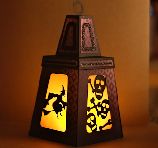 Today, we have Mike from DeZinesbyEM, who is our guest designer this week! He created the Spider and Skulls Halloween Lantern. The top comes off and you can put in an electronic battery powered tea light. If you go to his blog, he kindly created a video showing how he customized the lantern in Silhouette Studio, as he added a witch to a panel And he printed his own color vellum.
