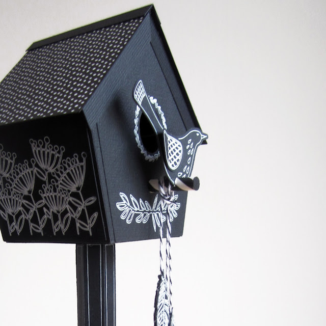 Hiya, Janet here with my first ever Design Team post for Simply Crafty SVGs. Today I have a fun little chalkboard birdhouse made by combining the Bird House Box and the Holiday Lamp Post. It’s made almost entirely from black cardstock and decorated with white gel pen. I’ve included details on how you can make this ‘hybrid’. I used a Silhouette Cameo® 3, but of course these svg files can be used with other desktop die cutting machines (details here).