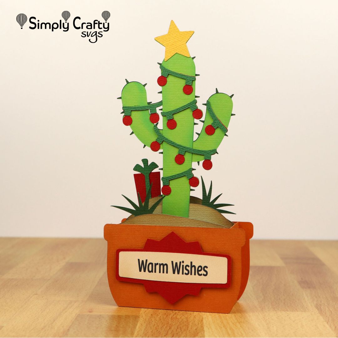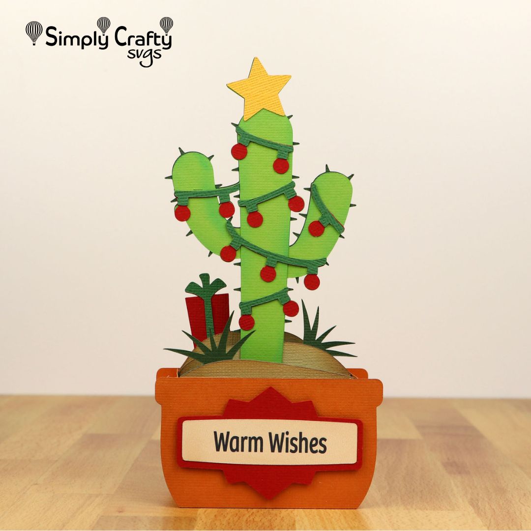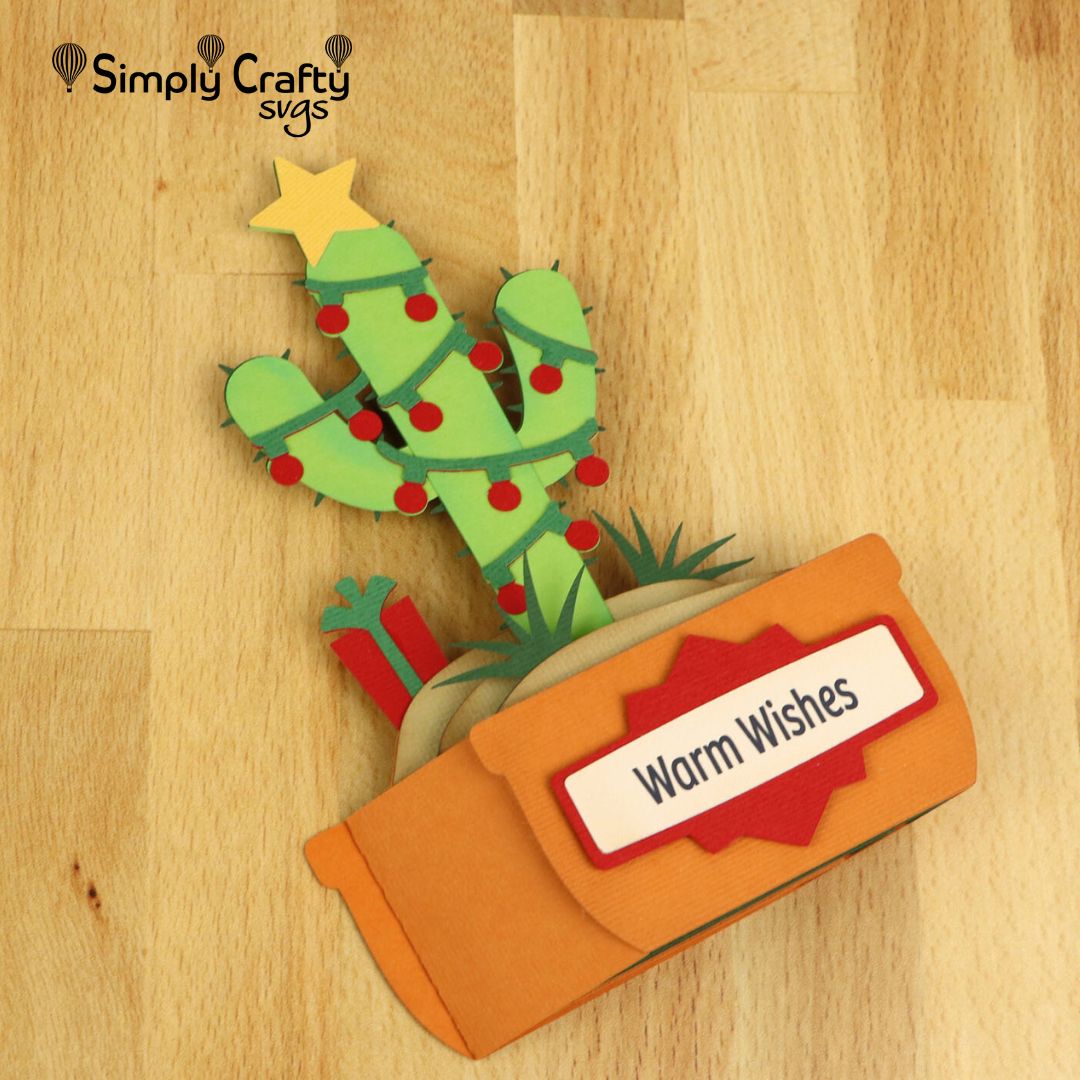 Make this desert Christmas card with the Cactus Christmas Card SVG File. Cactus box card SVG includes a printable tag with 2 sentiments and a blank tag. Within the extras, there is an alternative version of the lights, if you want to create a string with different color lights. Finished card flattened is 5" x 7" and fits into a standard A7 envelope.
