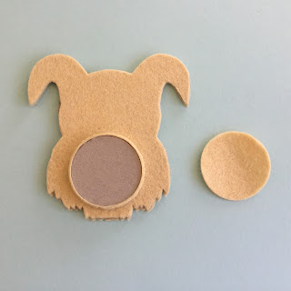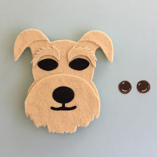 I made a ‘neck’ with a stack of board circles covered in beige felt which sat between the head and the body. The head and neck were adhered at a slight angle as that is how our terrier often stands.