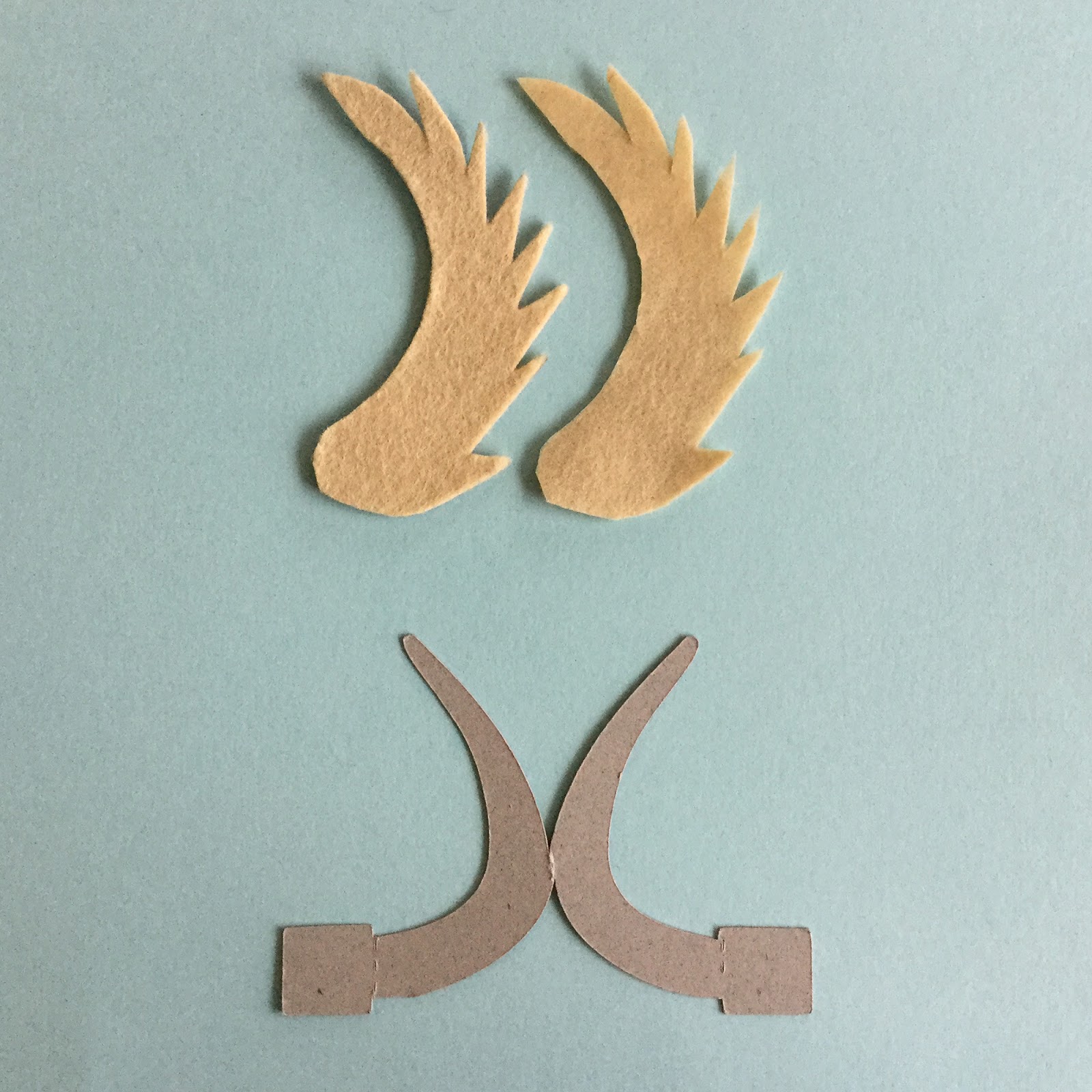 Ordinarily, I cut the felt on the Silhouette, but because only selected parts of these pieces need to be covered, it is quicker and easier to cut them with scissors using the Silhouette-cut board pieces as guides rather than edit all the pattern pieces in the software.