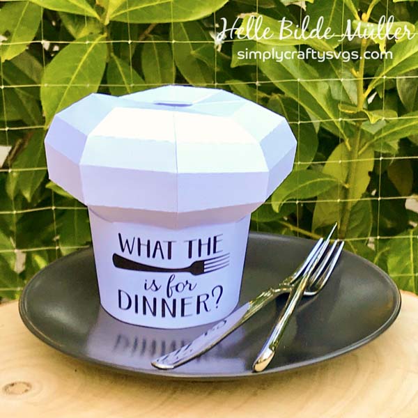 Here is a fun one from Helle at My Creative Hideout. Who sometimes dread the question “What’s for dinner?”, similar the sentiment on this 3D Chef Hat box.